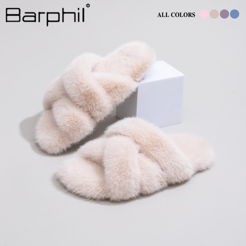 Women’s Fuzzy Slippers Cross Band