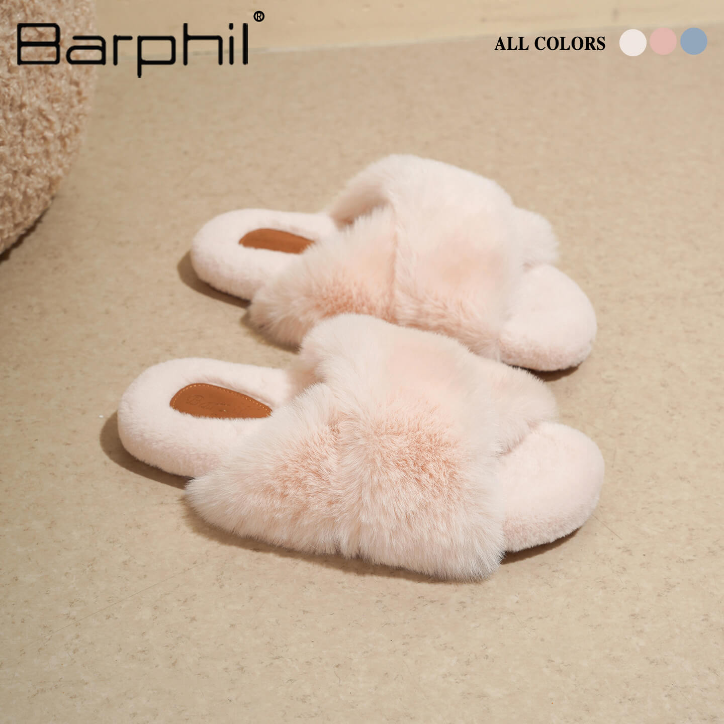 FEATURES ULTIMATE COMFORT: These white fuzzy slippers are made of soft faux fluffy rabbit fur, makes your feet surrounded by cozy and comfy plush for warmth and comfort. Eco-friendly thick plush fleece and breathable fur keeps away from coldness and give you a soft and dry touch